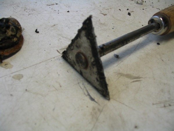 Het gereedschap wat ik gebruik om het tectyl te verwijderen, alleen het witte spul onder het tectyl is erg hardnekkig en moeilijk te verwijderen.