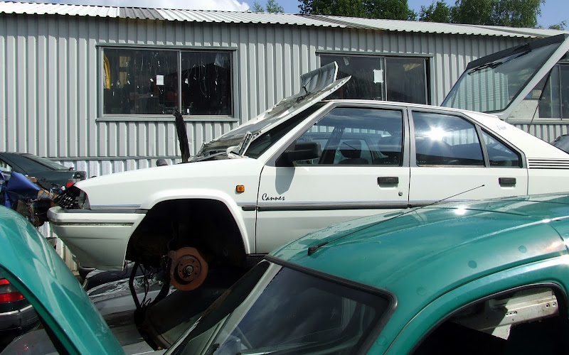 We zijn ook nog op een andere sloperij geweest, maar daar mochten we niet vrij rondlopen helaas, alleen onder begeleiding. Iedereen mocht daar vrij rondlopen, behalve wij. Onbetrouwbare Hollanders ook. Erg jammer, er stonden veel zeldzame auto’s. Ik heb alleen deze Visa op de foto gezet. Maar medeforummer VivélaDeuche heeft volgens mij meer foto’s gemaakt toen ik met de sloopmedewerker druk was met een Xantiaspoiler, haha.
