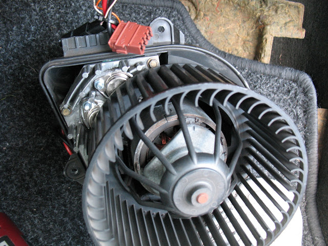 Als je de motor bekijkt en je ziet dit: dan is hij transistorgestuurd. Zo niet, dan is het er een met weerstanden. Die zitten boven de voeten van de passagier. In een van de kanalen van de ventilatie, heb ik ergens gelezen.