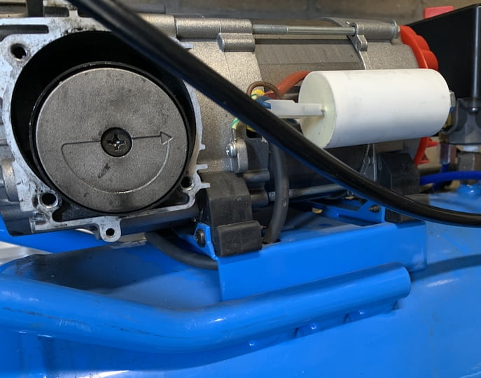 Ten eerste de compressor. Dit is een stil exemplaar (74 dBA op 1 meter) dat uitgerust is met een tweezuigercompressor in boxer-opstelling. Een eend-achtige, dus eigenlijk! Draait 2800 toeren en heeft een heel fatsoenlijke opbrengst van 210 liter per minuut, en een tankje van 15 liter. En stil genoeg om zonder oorkappen op in de buurt te kunnen verblijven.