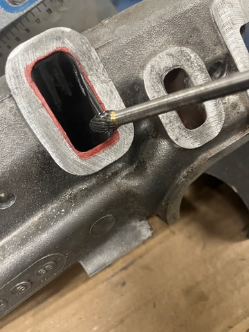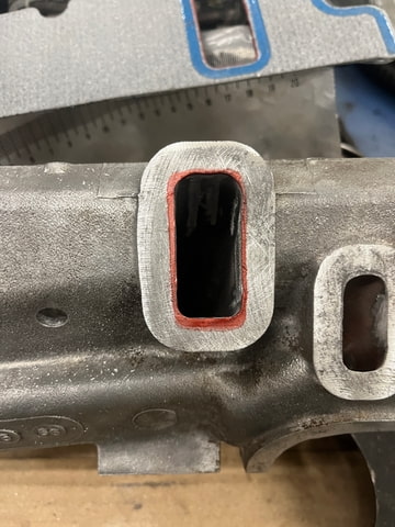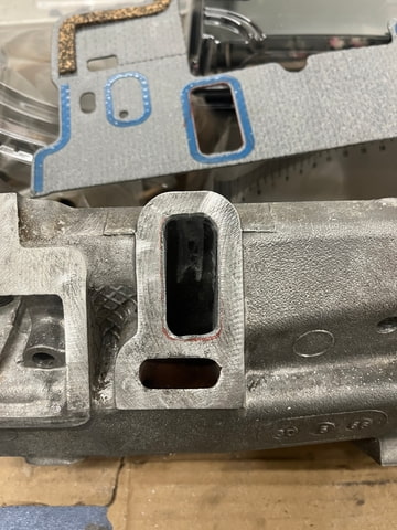 Derk schreef er al even over, het “matchen” van de poorten van het inlaatspruitstuk op de inlaatpoorten van de cilinderkop. De poorten van dat inlaatspruitstuk waren een stukje nauwer dan de poorten op de kop, maar het matchen van dat spul was een beetje lastig: je kunt op de inlaatspruitstuk gewoonweg niet te veel materiaal weghalen. Dat gezegd hebbende: het kan wel, maar met een beetje beleid dus.
