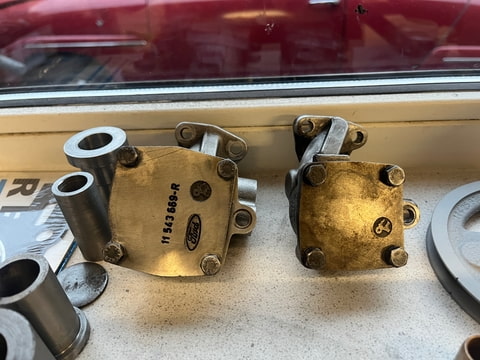 En een nieuwe, grotere, oliepomp. Rechts de oude, kleine pomp.