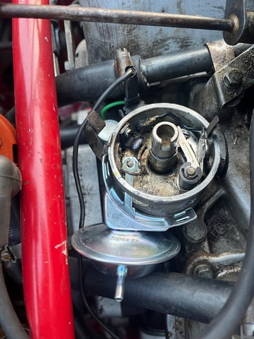 Oké, genoeg lopen mekkeren, door. Zo vond ik via via nog een New Old Stock vacuumvervroeger, voor een paar tientjes. Die heb ik dus maar aangeschaft waarmee ik m’n ontsteking weer helemaal conform het origineel kon maken.
