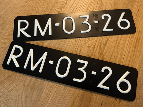 Vandaag kwamen de door de Fa. Velthuis gemaakte kentekenplaten binnen: