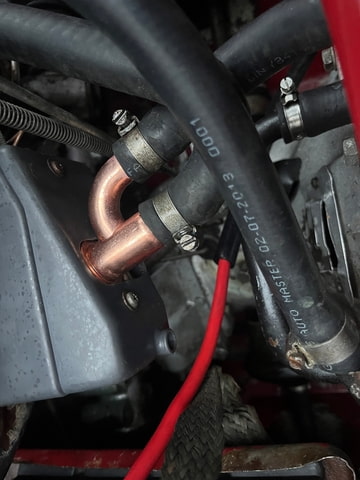 Stuk slang gehaald bij de automaterialenzaak, paar koperen bochten, paar slangklemmen en het probleem was opgelost voor een fractie van dat bedrag.