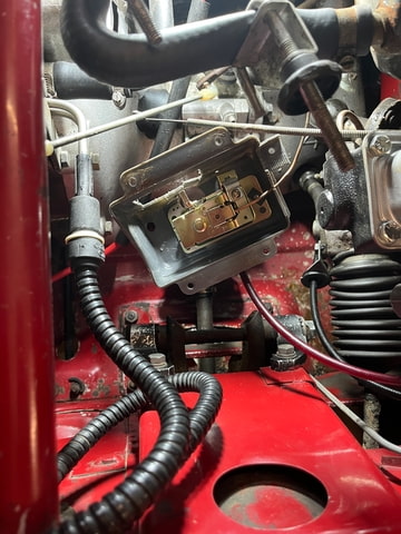 Het volgende wat de geest heeft gegeven na 59 jaar is de kachelkraan. Gisteren een plas koelvloeistof in het vooronder na een ritje. Vandaag de kraan gedemonteerd en een nieuwe besteld want deze is echt op.
