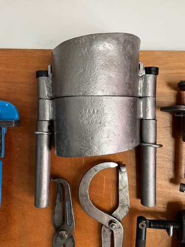 Ik had mazzel, een mede-Saab rijder wees mij op iemand die zo’n spanner had en die we wel van af wilde. Voor een paar tientjes was ik de man! De spanner hangt dus nu bij mij thuis aan het bord speciaalgereedschap.